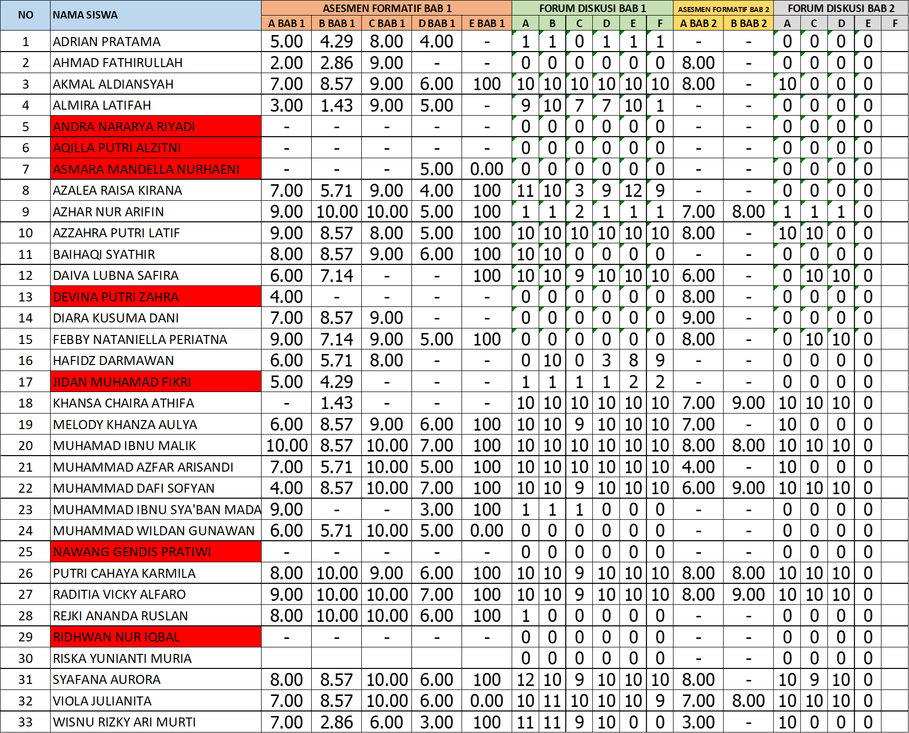 REKAP NILAI 76 BAHASA INDONESIA BAB 1 dan 2 SEMESTER 2