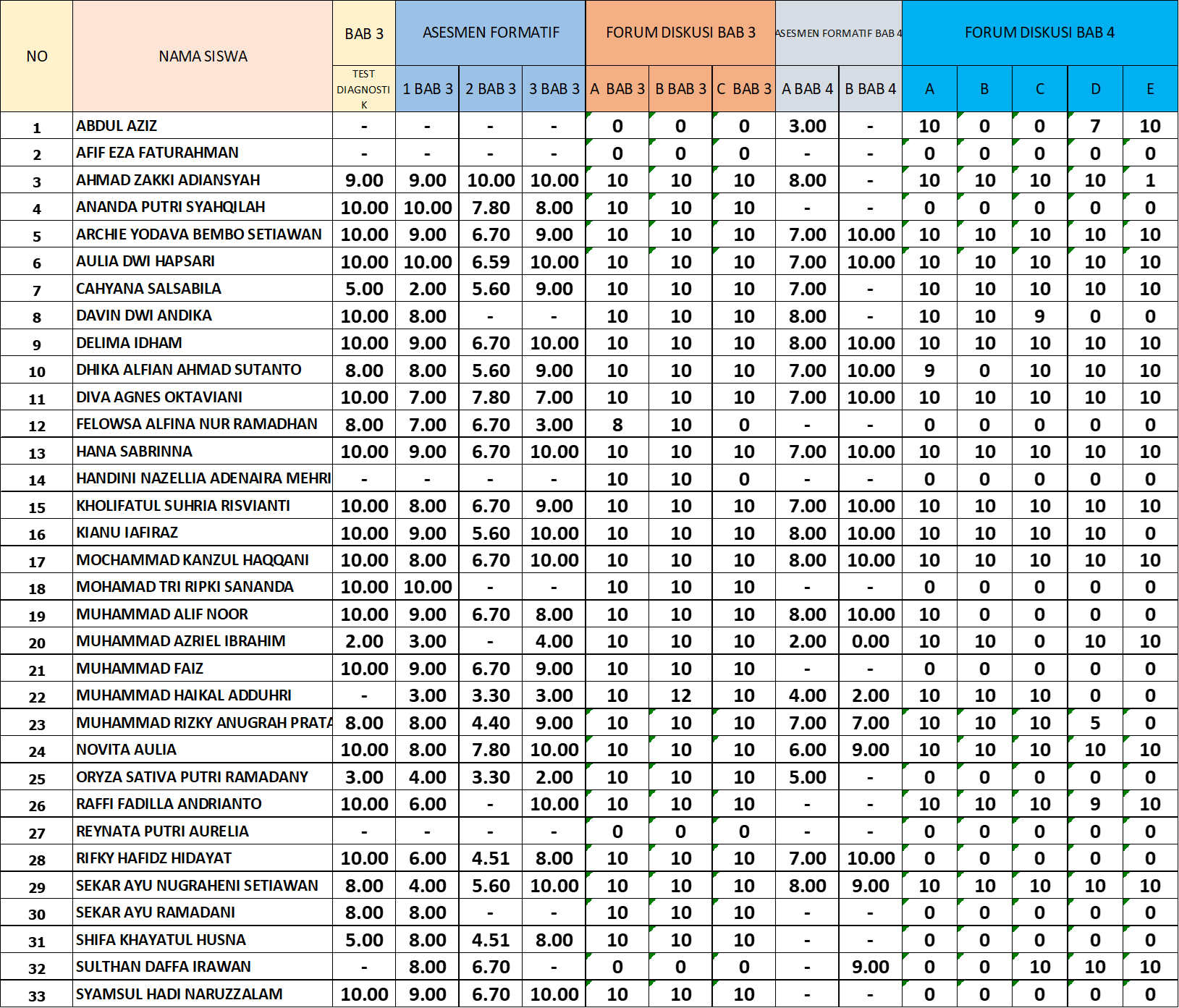 REKAP NILAI 92 BAB 3 dan 4 SEMESTER 2 INFORMATIKA