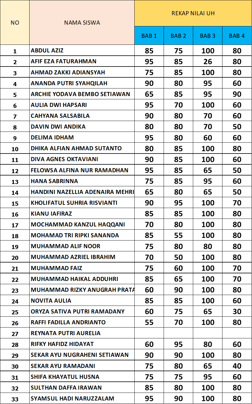 REKAP NILAI UH KELAS 91 INFORMATIKA