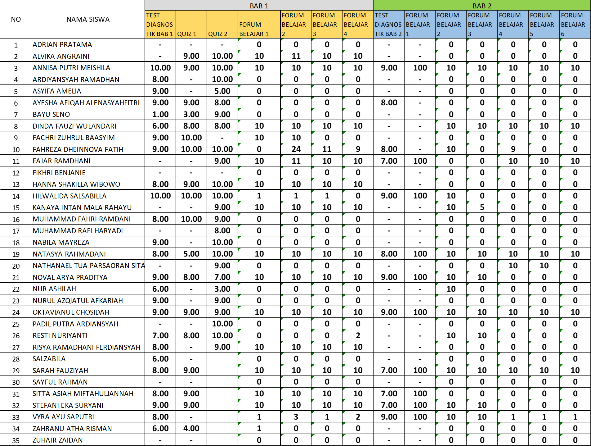 REKAP NILAI KELAS 77 B INDONESIA BAB 1 dan 2 ►